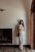 Hecho en una tela texturizada con un sutil satinado perla que lo convierte en la opción ideal para un baby shower, gender reveal o cualquier evento donde quieras verte elegante y con estilo.